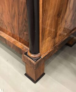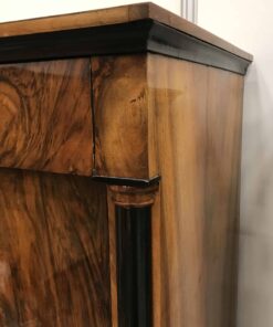 19th century Biedermeier Fall Top Desk, classic Biedermeier Design, made in Austria around 1820. Walnut veneer with ebonized details and writing top. The secretaire will be shipped from Germany, shipping costs to Boston are included.