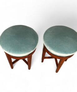 Discover the timeless elegance of Biedermeier tools with this exquisite pair of stools, originating from 1820s Germany. Crafted with meticulous attention to detail, these round stools boast a charming walnut veneer that exudes classic sophistication. Adorned with a delicate light blue velvet upholstery, they effortlessly marry style with comfort.