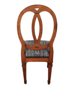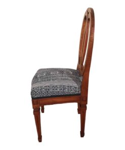 The Louis XVI chairs measure Height: 37.8 in (96 cm), Width: 16.93 in (43 cm), Depth: 17.33 in (44 cm), Seat Height: 19.3 in (49 cm) and have a new upholstery and are covered with a prestigious woven Jacquard fabric “Nouria” by JAB.