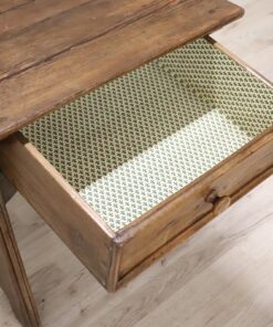 This charming antique mountain nightstand or coffee table, made of solid oak and fir, combines rustic elegance with practical functionality. The table is equipped with a practical front drawer, which provides convenient space for storing small items. Its natural wood finish and sturdy construction make it an ideal accent piece for a mountain cabin or country home.