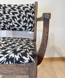 Limed (white chalked) oak wood. Elegant and balanced modernist Art Deco design.