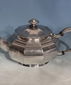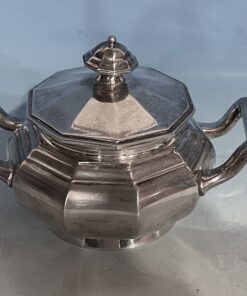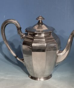 This pretty Art Deco silver coffee and tea set stands out for its geometric design of the early 20th century. The silver marks identify it as a German piece with a millesimal fineness of 835. The set is in good condition with the expected wear and tear.