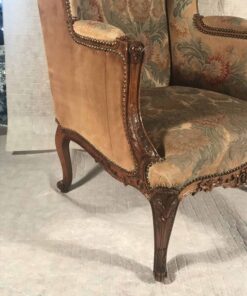 Introducing an exquisite Baroque wingback armchair that transports you back to the elegance of the 18th century. This remarkable piece, originating from Germany around 1760, showcases the grandeur and craftsmanship of the Baroque era. Crafted with meticulous attention to detail, this unique original chair boasts a beautifully carved walnut frame. The intricate floral and acanthus decorations add an ornate touch, elevating its aesthetic appeal. Beyond its historical significance, this chair offers both comfort and extraordinary design.