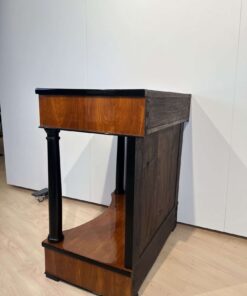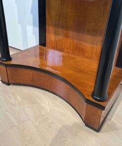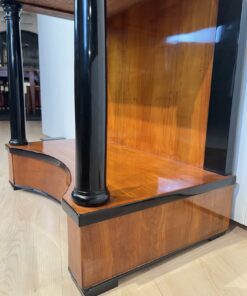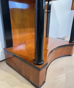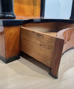 Blonde cherry wood veneered on softwood and cherry solid wood, partly ebonized. Two thick round ebonized full columns.