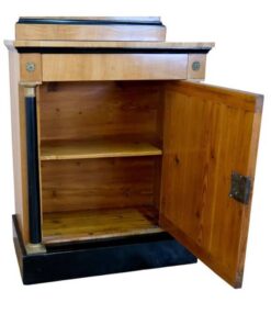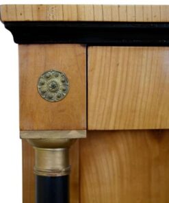 This very pretty original Biedermeier Console Table with Mirror, Southern Germany dates back to circa 1820 and is cherry veneered. It has a central door with ebonized solid columns and base, brass capitals and bases decorate the columns. Â A fine and harmonious piece of furniture, an ideal addition for your entryway. Rare!
