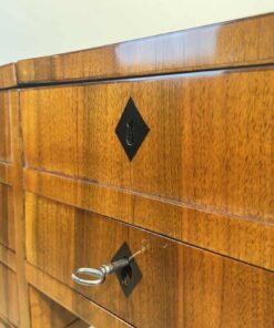 Expertly restored and hand-polished with shellac, this dressing table is not only a rare find but a testament to the artistry of Southern German furniture makers. The six original brass knobs and hinges, ebonized hash key escutcheons, and iron lock with a key further enhance its authenticity. Embrace the charm of a bygone era with this exquisite Biedermeier piece, where history and elegance converge.