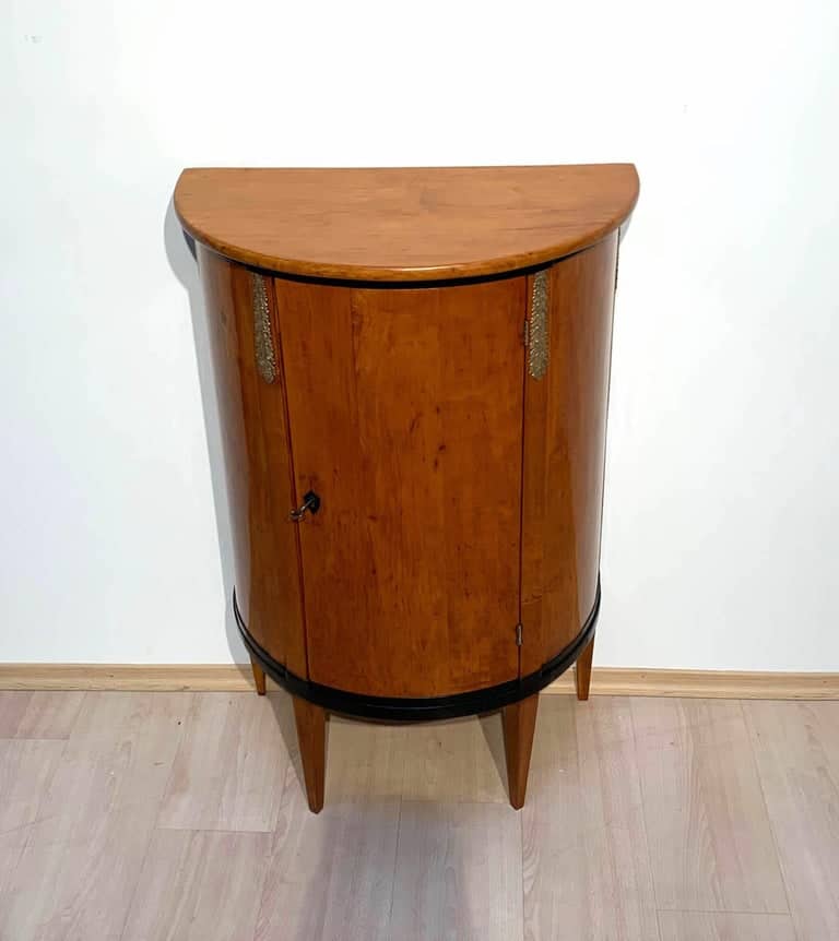 Biedermeier Half Cabinet, Demi-lune, Cherrywood and Brass, France, circa 1810