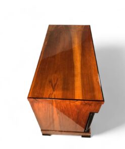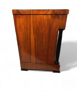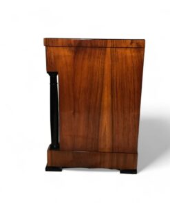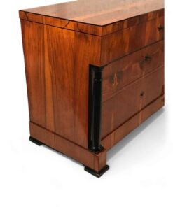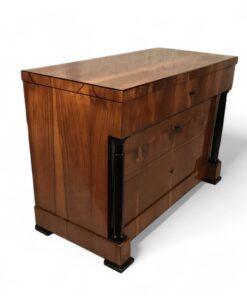 Step into history with our classic Biedermeier chest of drawers, originating from 1820 in South Germany. Crafted with exquisite walnut veneer and featuring striking ebonized columns, this piece exudes timeless elegance. With three drawers, including a protruding uppermost drawer, it epitomizes the early Biedermeier style, showcasing the perfect blend of functionality and sophistication. Meticulously refinished with a shellac polish by our expert craftsmen, this Biedermeier chest is not just a furniture piece but a work of art that adds character to any space. Explore the charm of the past with this stunning addition to your home decor. The dresser ships from Germany and includes the international shipping costs and duties to Boston in the price.