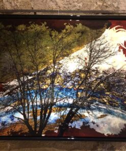 This contemporary artwork by the French artist Sandrine Berthon is titled “L’Entretemps “. It is a digital creation, with some touch of acrylic painting, covered with a thin layer of resin. It is also a limited edition, with only eight copies for sale. Additionally, it is signed on the back with a certificate of authenticity.