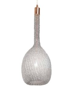 The lamp shade is made of copper thread with a resin coating for the light pink version. For a grey version the designer uses tinned copper thread with resin coating. Each single lamp is woven by hand without any tools.