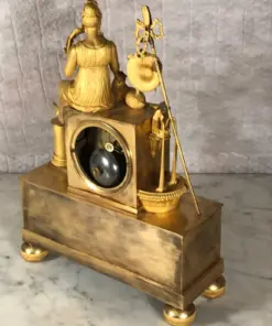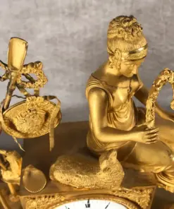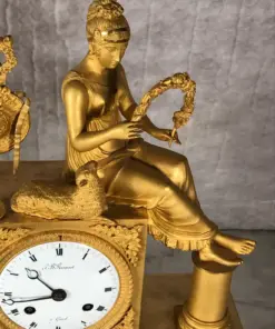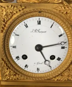 This Empire ormolu mantel clock comes from Belgium and dates back to circa 1810, it is signed “J.B. Romaet a Gand”.and decorated with a shepherd scene. It strikes the hour and half hour on a bell. With enamel clock face and silk suspension. In good working condition.