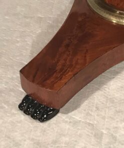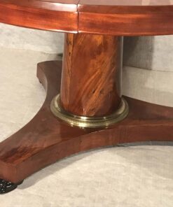 This exquisite extendable Biedermeier Mahogany Table, dating back to 1830 and originating from the German-French border region, is a true gem for those with a taste for classic elegance. The table features a round design, with a central column gracefully resting on a trefoil base. The lower portion of the column is adorned with a beautiful brass ring, adding to its overall charm.