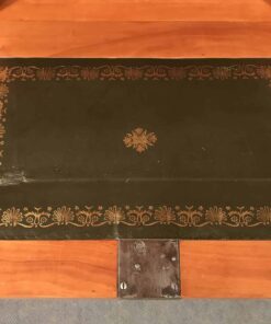 The commode is in very good condition. all the brass hardware is original. The leather was probably replaced.