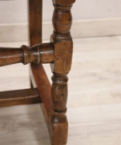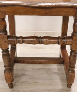 This 17th-century French Lorraine chair is a stunning piece of antique furniture. It’s simple and essential design, paired with the turned decoration on the front legs. A beautiful balance between rustic charm and elegant craftsmanship. Featuring solid walnut, this piece exudes durability and timelessness. The custom-made cushion adds both comfort and a touch of personalization. This chair is a perfect addition to any home looking to incorporate a bit of history and rustic elegance into their decor. It’s particularly well-suited for country or mountain homes, where such pieces can enhance the cozy, welcoming atmosphere. Perfect antique condition and ready for use, it represents not only a piece of functional furniture but also a collector’s item that can be cherished for years to come.