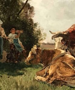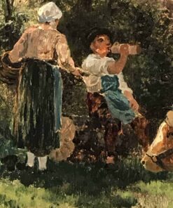 “Farmers taking a rest” , oil on wood. Hermann Baisch signed and dated his painting on the lower right.