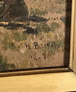 The painting is in very good condition and has its original frame. It ships from Germany and includes shipping costs to Boston. It measures H 12.41 in. x W 16.54 in. x D 3.55 in. (H 31.5 cm x W 42 cm x D 9 cm) size without frame.