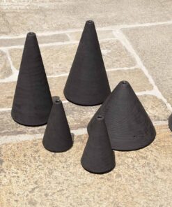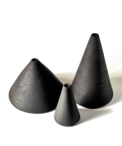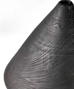 The iconic black vase Vulcano medium is a single-flower vase with a monolithic appearance: a cone in turned cedar wood, empty inside. The serie is treated with a characteristic burnt surface finish that makes the appearance impressive and at the same time stands out the soft wood grain. A glass tube inside the vase can accommodate a single flower or perfumed essences.