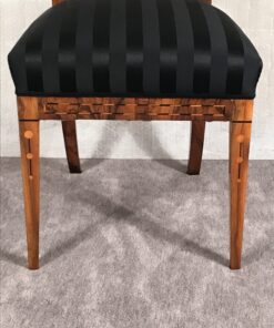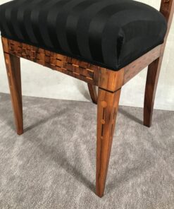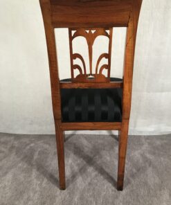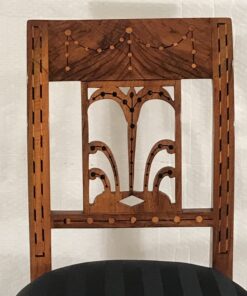 This unique Louis XVI chair dates back to 1800 and was made in the southern part of Germany. It has a beautifully designed back. The chair features walnut veneer and has pretty yew wood inlays.