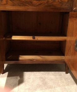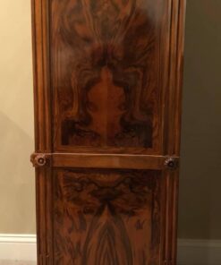 The drop front desk offered here originates probably from the western, provincial part of France. The use of local wood and the carved ornaments suggest the assumption that this furniture piece was not made in one of the royal workshops. It is clearly connected to the more unpretentious “Zopfstil”, the German version of the Louis XVI style. The German cabinet makers often renounced the use of too pretentious bronze fittings and focused on the beauty of different wood grains and carved details.