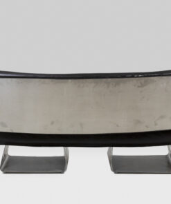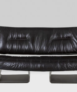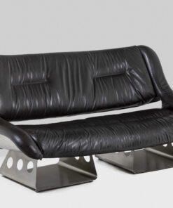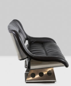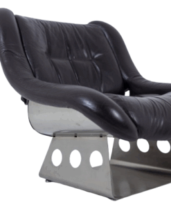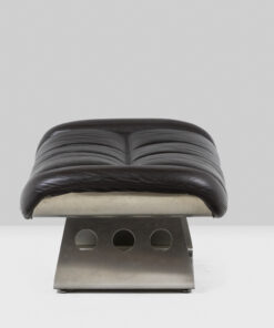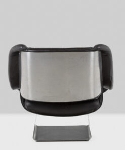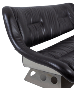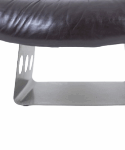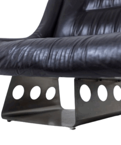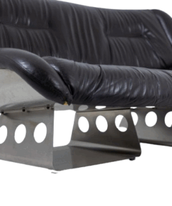 This metal and leather living room set includes a sofa, armchair, and ottoman, all crafted with chocolate-colored leather and brushed stainless steel frames. The sleek combination of metal and leather creates a timeless, modern look that elevates any living space.