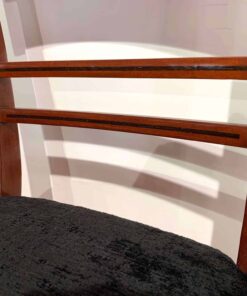 A pair of Neoclassical side chairs from Vienna, Austria. These antique chairs date back to the early Biedermeier period, around 1820. The chairs consist of mahogany solid wood with tasteful ebony inlays, leaving a beautiful and elegant appearance. The inlays are most prominent on the backrest and showcase a grecian design. The exterior has been hand polished with shellac (French Polish). An elegant black structured fabric and double keder covers the newly upholstered side chairs. Sold separately, price is for one chair. Overall a wonderful set of antique chairs that are ready for your home today.