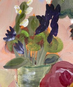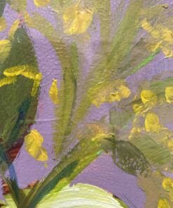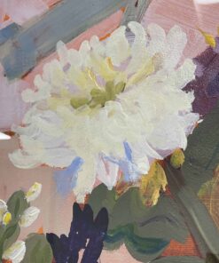 Painting by Mara Wagner, Contemporary Artist from Massachusetts. “Emily’s Flowers”, acrylic paint collage, size with frame 33 x 25.4 in.