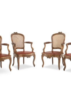 The curved base ends in delicate floral decorations, and the armrests are gracefully set back, adding to the classic Louis XV style. Ideal for adding a touch of historical elegance to any interior, these armchairs are a testament to the craftsmanship of the 18th century. This set of two armchairs is available for purchase, with the option to acquire a complete set of four for €3,400. For more details or to discuss this unique offer, please contact us.