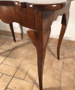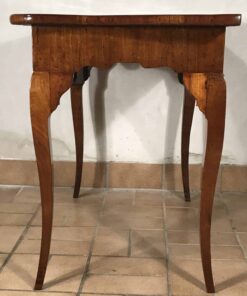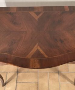 Exquisite and rare pair of console tables probably coming from the Veneto region. Walnut veneer embellishes the curved tops and the cabriole legs. Furthermore, each console table has one central drawer.