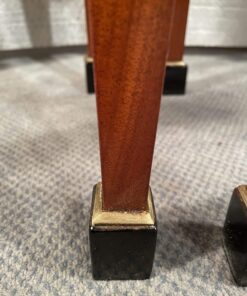 These exquisite side tables exude timeless charm, standing gracefully on slender legs while showcasing the allure of mahogany veneer and lustrous dark marble tops.