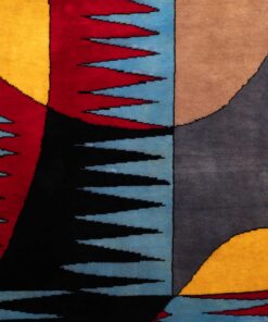 This contemporary rug, inspired by Robert Delaunay’s abstract and geometric art, boasts vibrant red, yellow, and black shapes on a dynamic blue backdrop. Hand-knotted with precision using Merino wool, it’s a limited edition piece, numbered 1 of 8, covering 5.6 square meters with a density of 784,000 knots. It comes with a certificate signed by the publisher, adding to its authenticity and artistic value. Elevate your space with this unique tribute to Robert Delaunay’s visionary work.