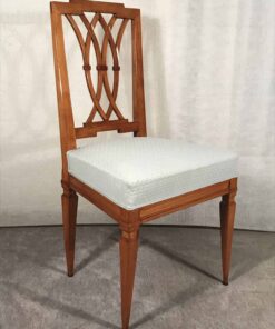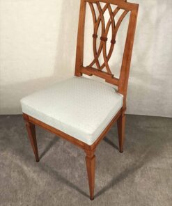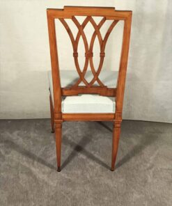 This set of 6 original Neoclassical Chairs dates back to around 1800-1810 and comes from southern Germany. The cherry wood chairs have a beautifully designed back. The square legs show typical Louis XVI style design details. This are the perfect chairs for an elegant dining room. Combine them with an antique table of the Biedermeier or Louis XVI period or use a contemporary table, the chairs will add a very special touch to your interior. The chairs are in very good condition.