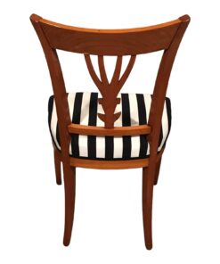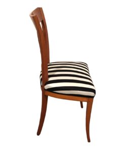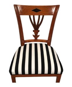 Beautifully designed set of six Neoclassical chairs dating back to around 1810-30. The chairs come from Southwest Germany. The back has a very pretty open work design with a hand carved leave design. The Neoclassical chairs are refinished and have a new upholstery and are covered with a very pretty black and white striped woven Jacquard fabric by JAB Anstoetz.