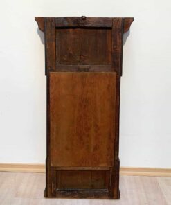 A small Biedermeier wall mirror featuring a cherry veneer and solid wood. The mirror comes from Southern Germany and dates back to 1820. This Biedermeier mirror contains a curved cornice (or “Karnieschwung”) and has clearly visible original glass. The stepped top elegantly arches over the mirror and contains tasteful variations of wood color. The walnut veneer is especially beautiful contrasted against the darker top and bottom of this antique mirror. This unique piece would be a great addition to any home.