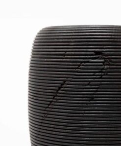 Vase made of Cypress wood, turned with soft shape and generous thicknesses. The surface is carved with horizontal lines, continuous or discontinuous, as the rings of the trunk that mark the time passing and is colored with a finishing based on metal oxides.